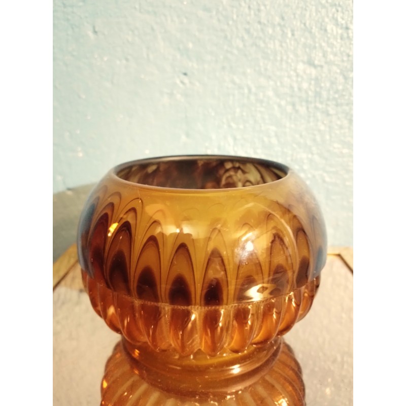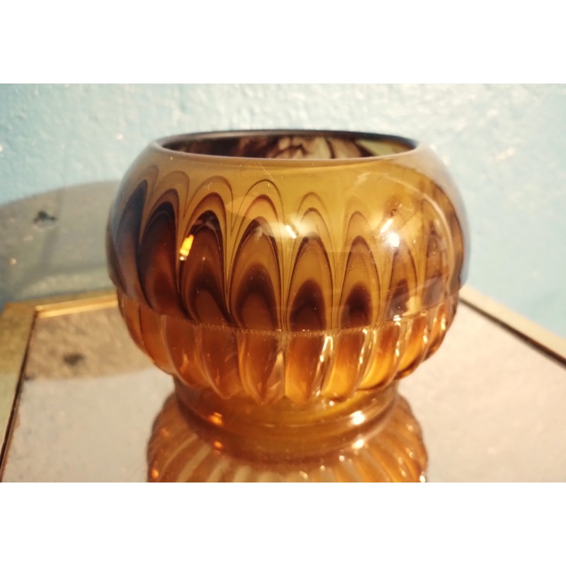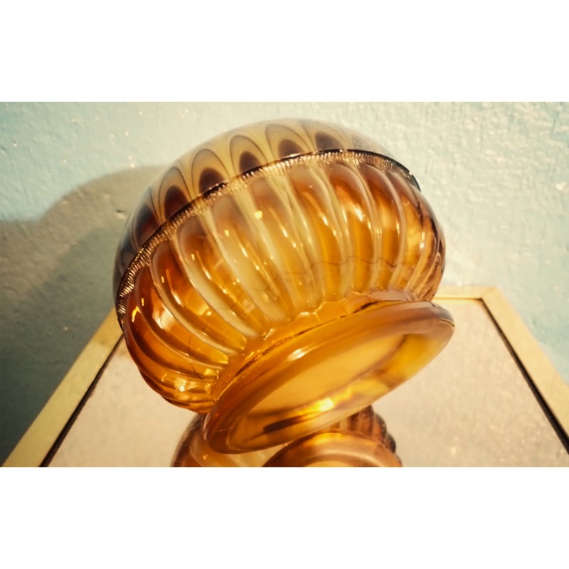 Edité par la célèbre entreprise Anglaise de verrerie Davidson & Co, bol modèle n°1910 de la collection "Amber cloud glass" (catalogue juin 1940), forme bombé en verre ambré translucide pour un superbe jeu de lumière, base circulaire à décor de stries.. Elégant & décoratif !