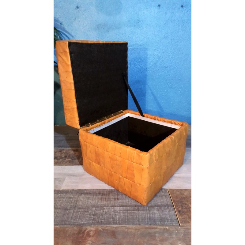 Tabouret coffre cuir années 80