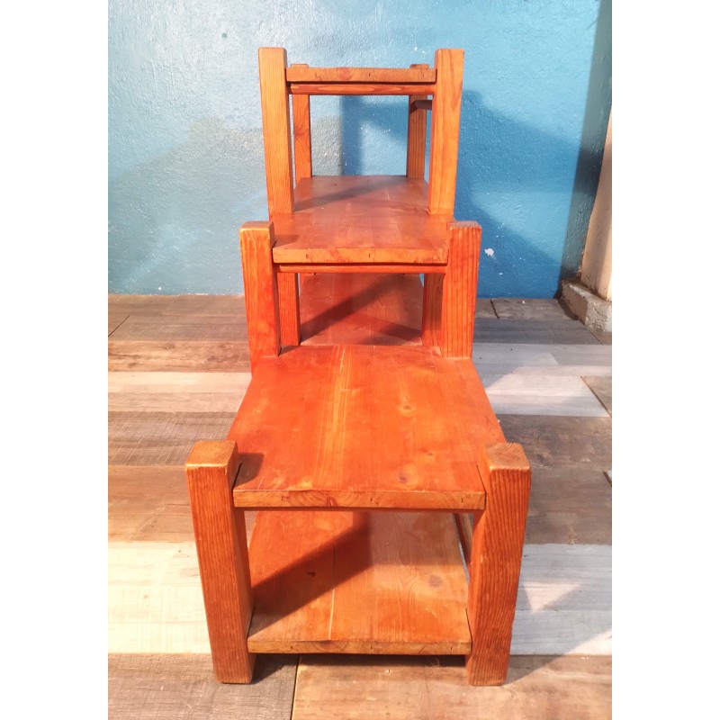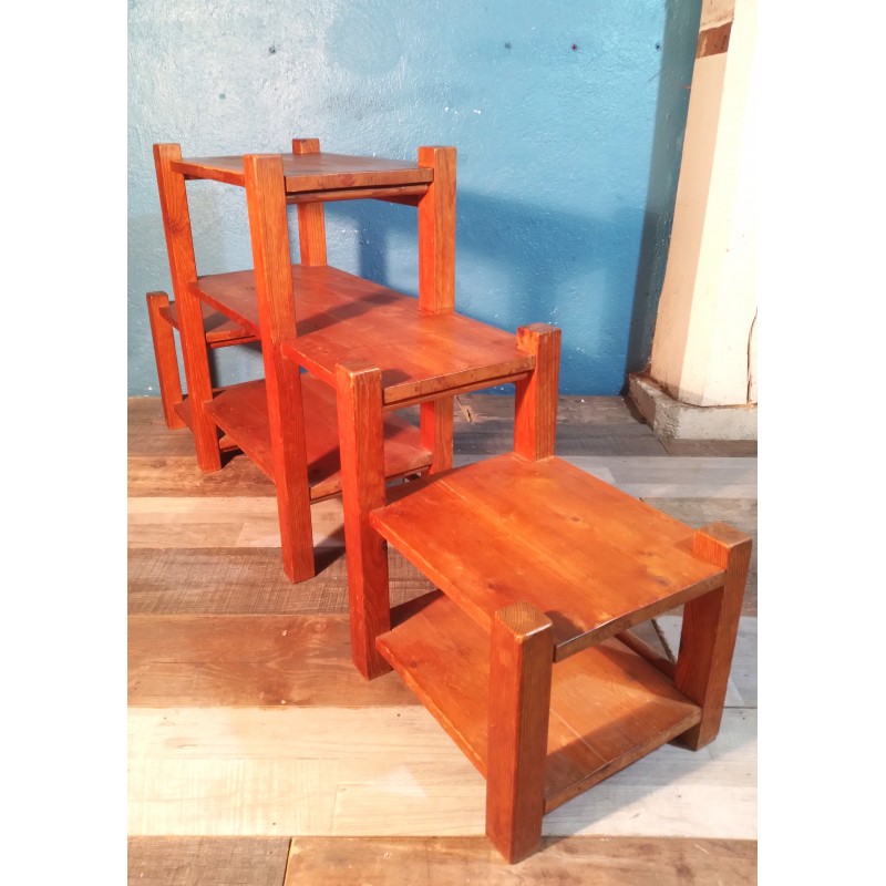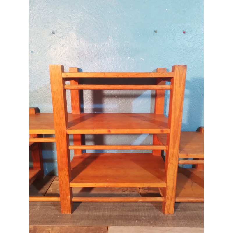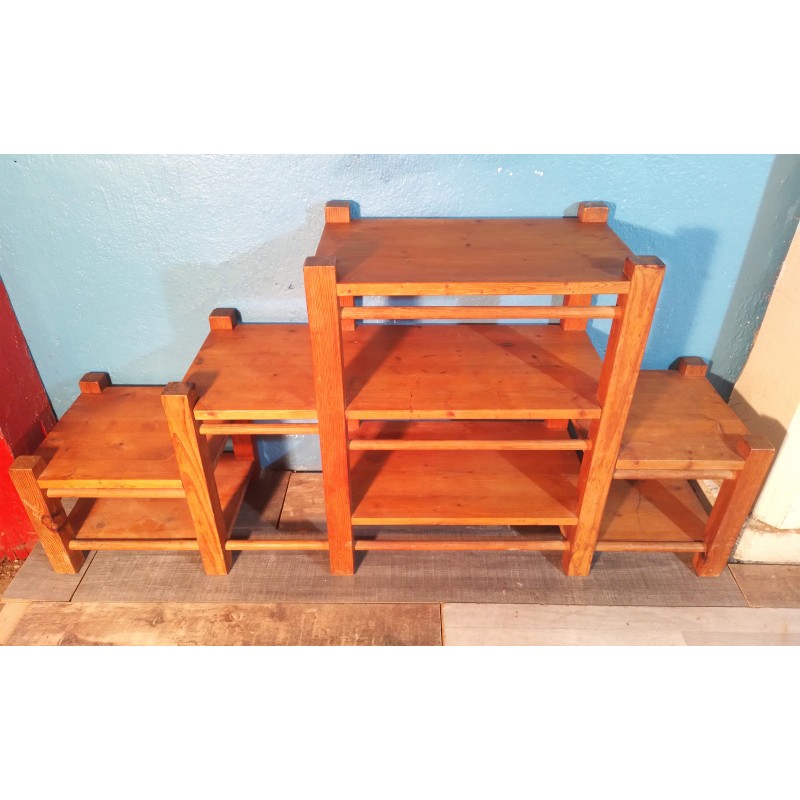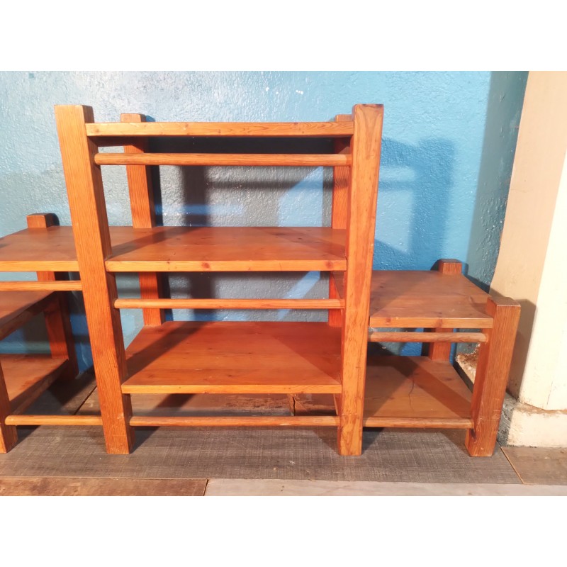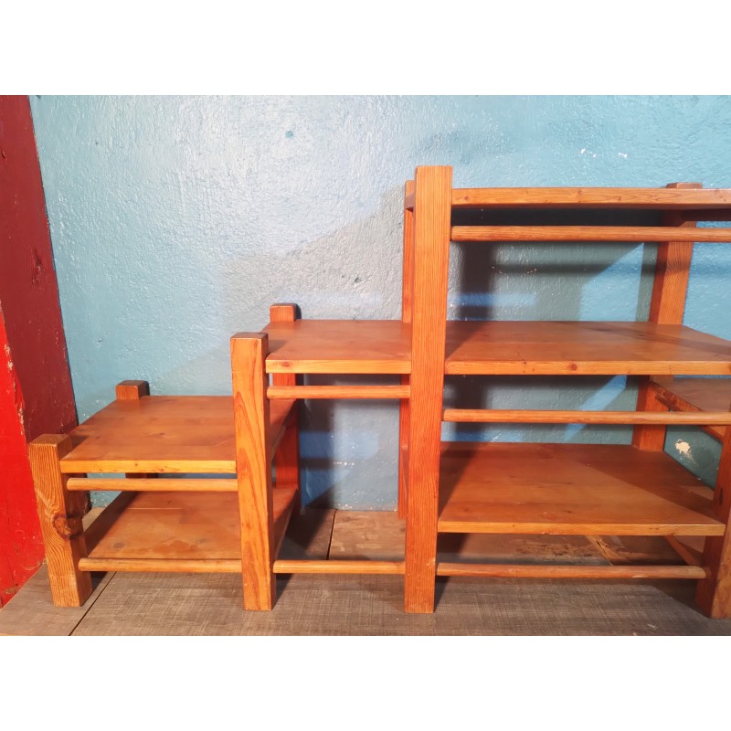Le coup de coeur pour cette ravissante étagère ! Un modèle des années 70 aux lignes géométriques et brutes avec structure en pin formant 3 paliers de différentes hauteurs pour compartiments et étagères, barres de renfort.. Parfaite pour une décoration modulable !