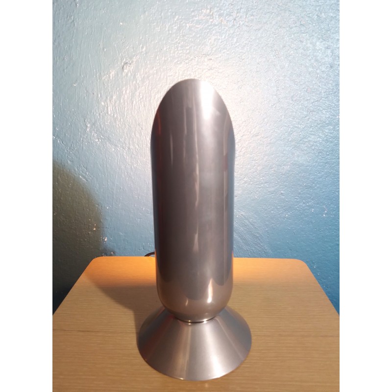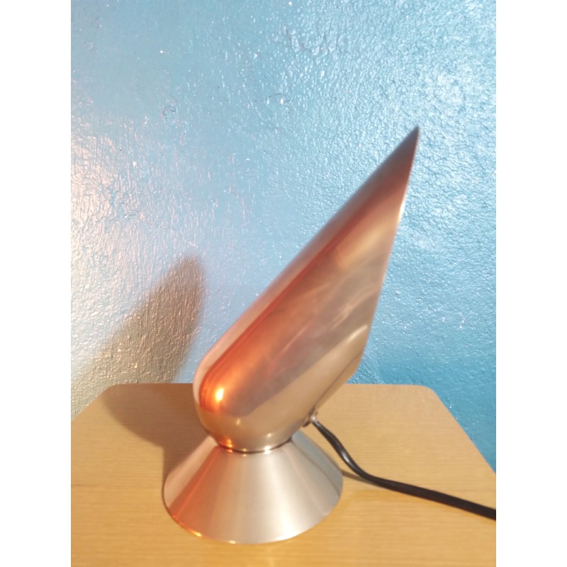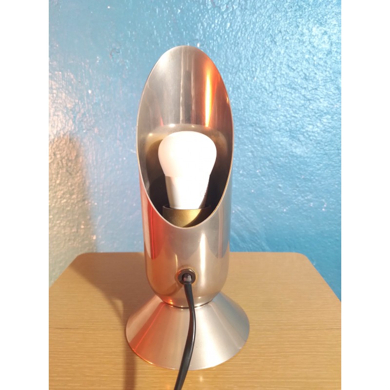 Le coup de coeur pour cette jolie lampe des années 60 ! Attribué à la Maison d'édition Italienne Reggiani Illuminazione, modèle très graphique de style "Space Age" composé d'un socle conique en métal chromé sur lequel repose une partie tubulaire formée en pointe avec contrepoids permettant différentes inclinaisons..