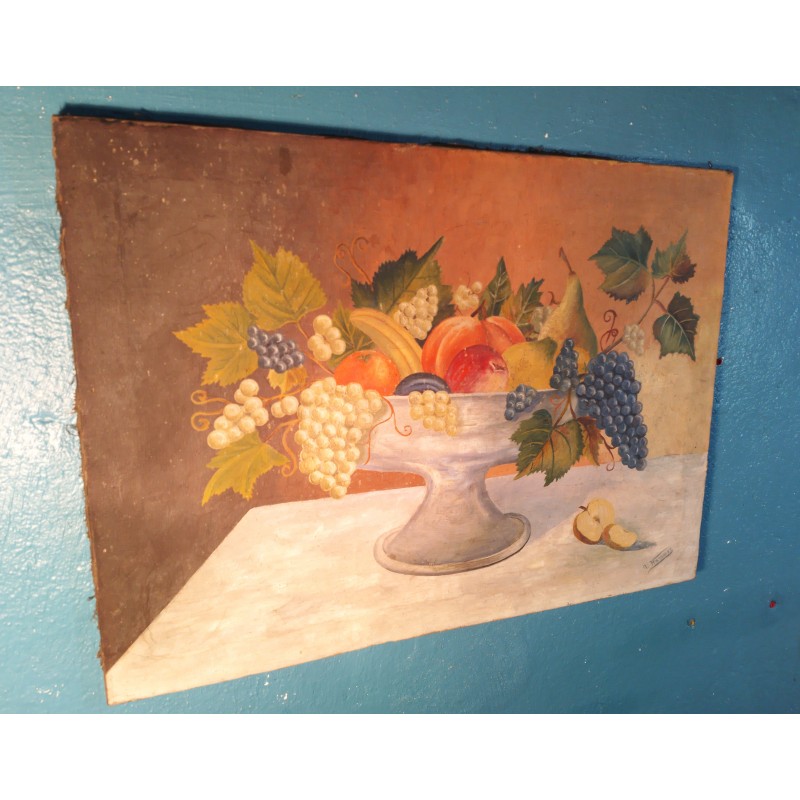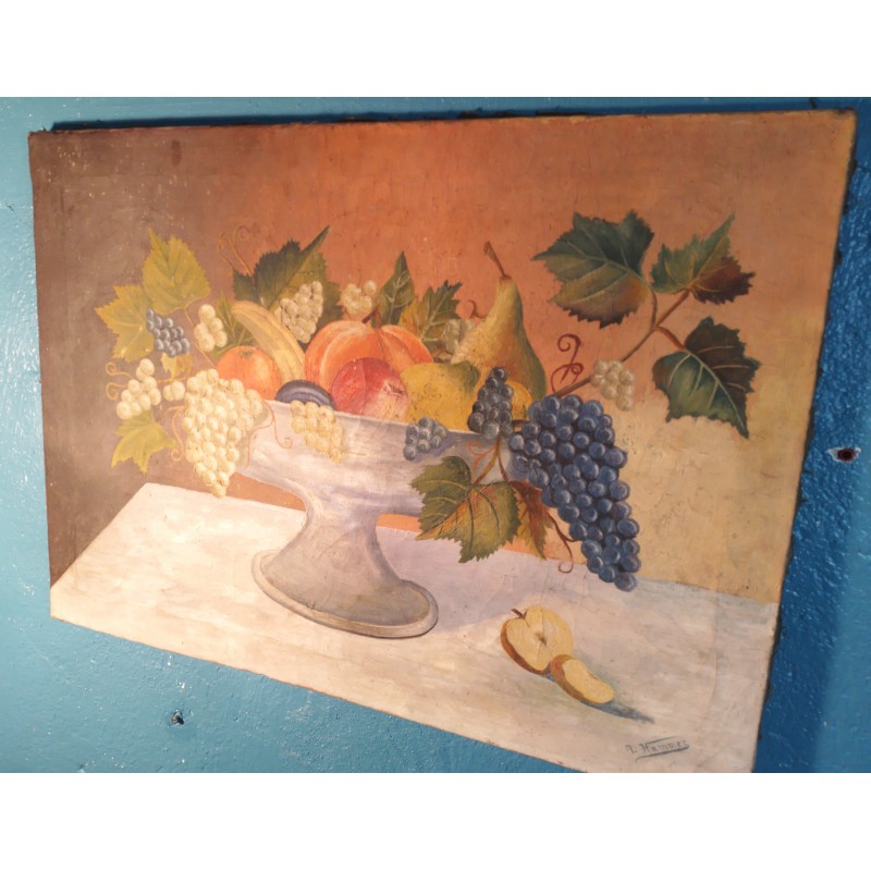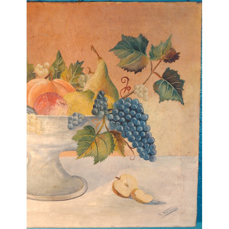 Ravissante huile sur toile de la fin du XIXème siècle ! Une "nature morte" joliment exécutée signée A Hammer avec cette belle coupe de fruits posée sur une table de bois.. Une pièce unique très décorative !